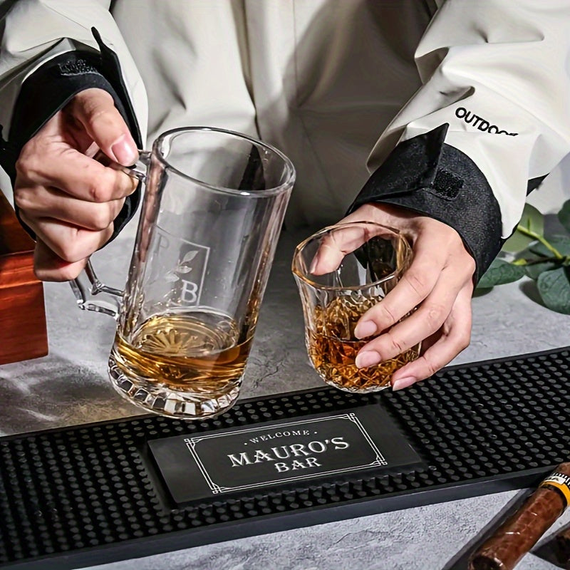 Com gravação elegante de nome (exemplo: “Bar do Hannibal”), esta bandeja compacta é o protetor ideal para balcões e bancadas — perfeita para bares domésticos, profissionais ou cozinhas.